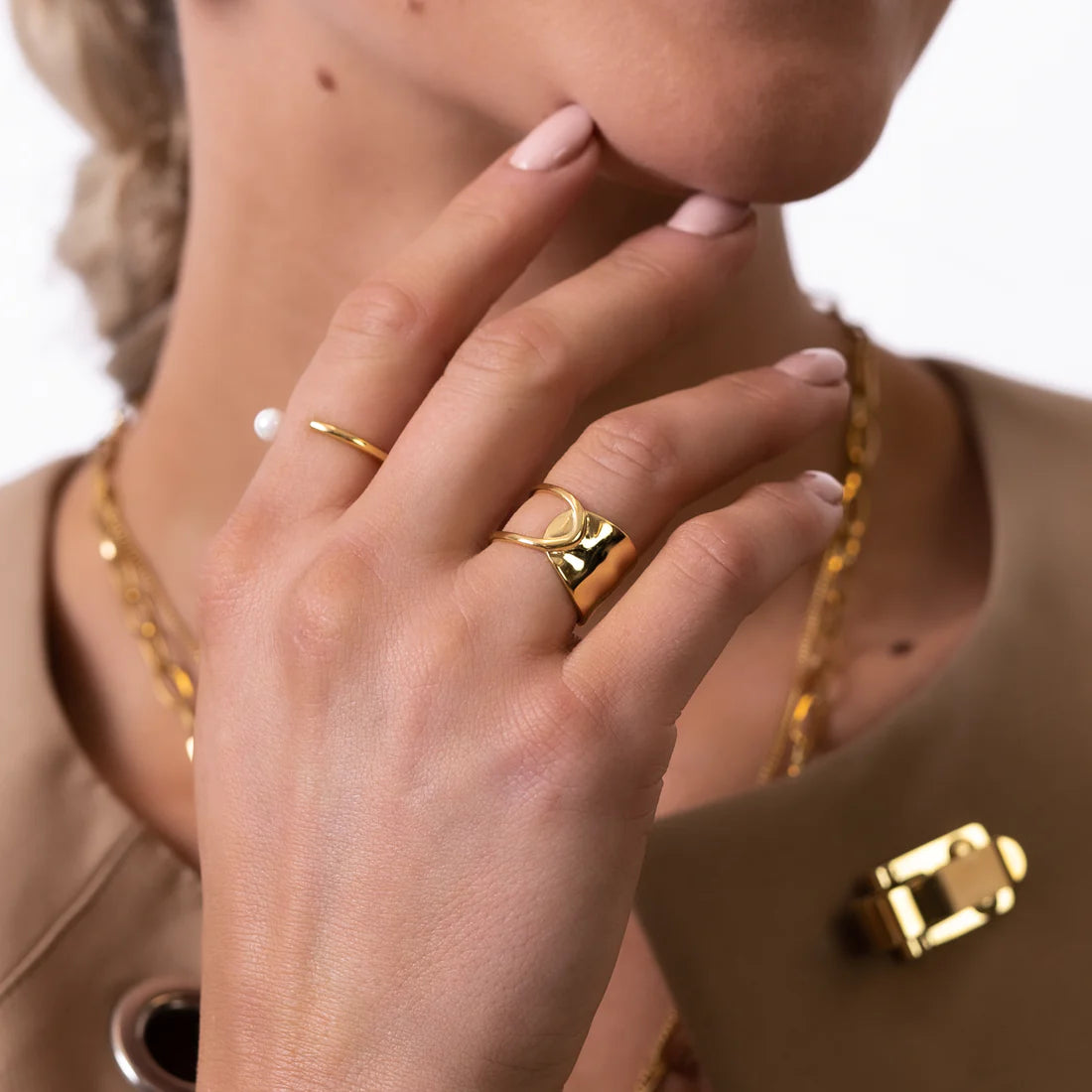 THE HALFWAY RING ist vollständig verstellbar und passt allen Größen. Das Design ist sowohl elegant als auch auffallend und eine perfekte Ergänzung zu jedem Outfit und jeder Ringkombination.