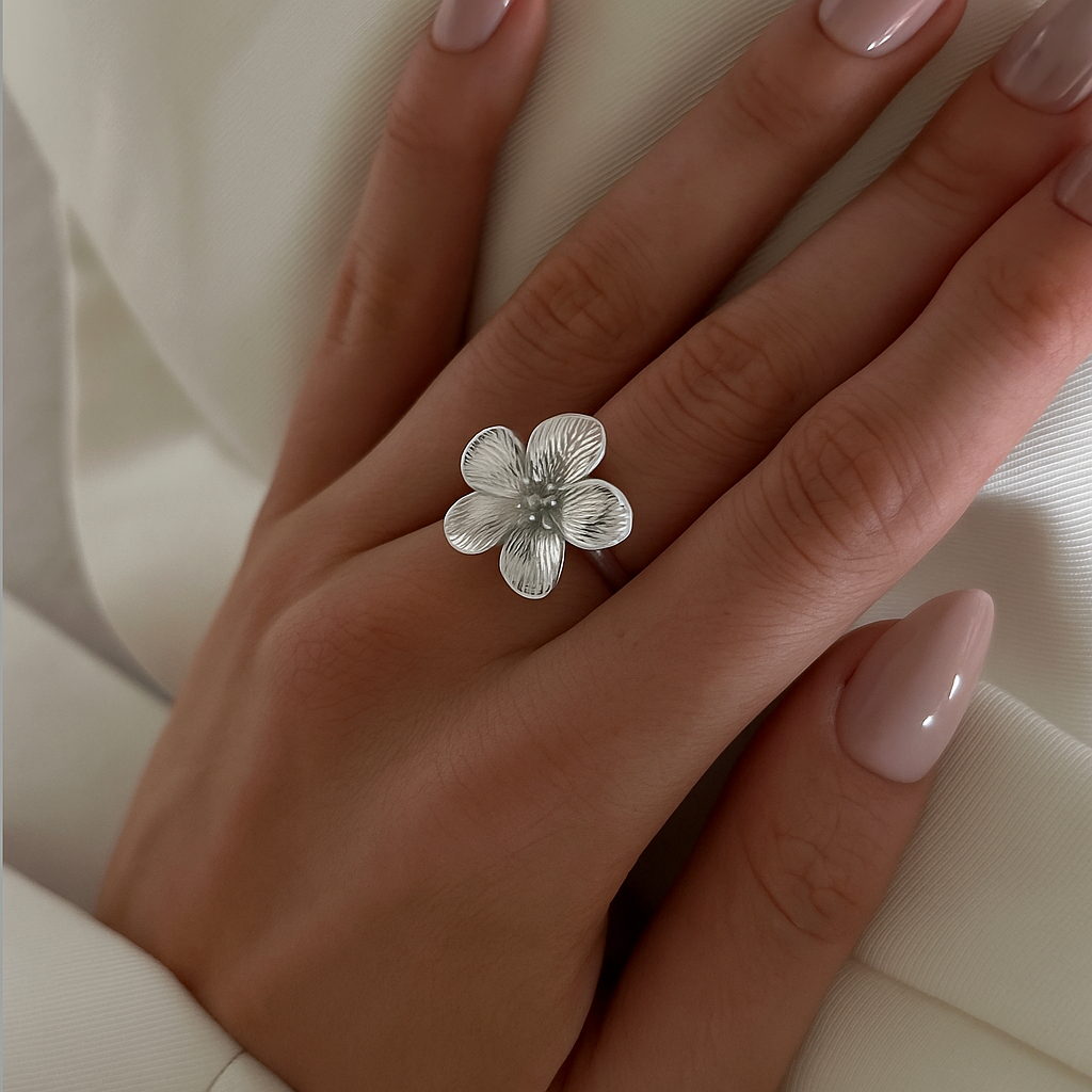 MIDI FLOWER RING Silver