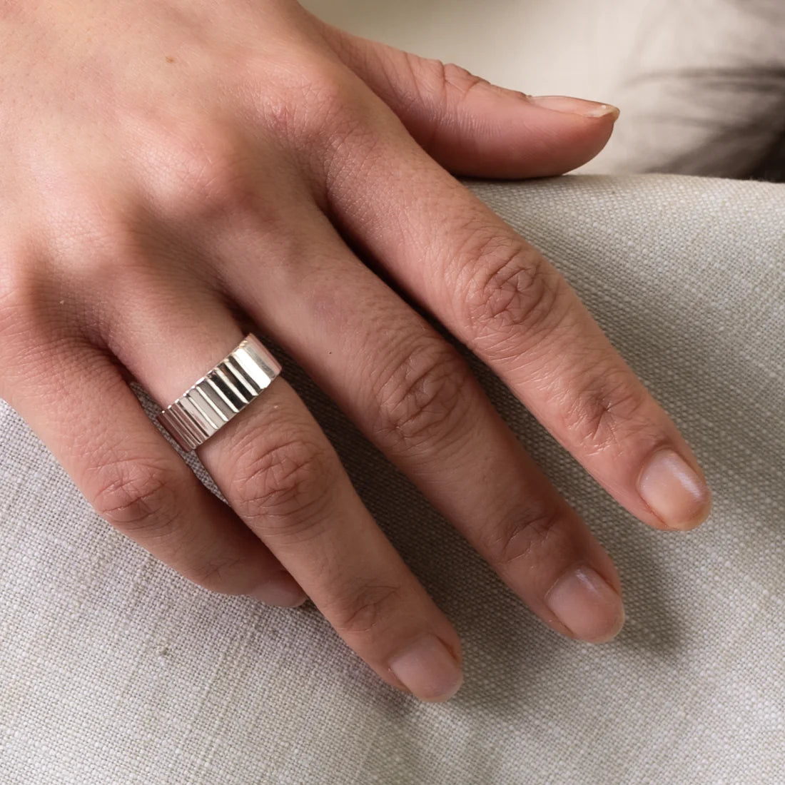 THE SHINY RING hat ein kühnes und glänzendes Unisex-Design aus 925er Sterlingsilber oder 18-karätiger Vergoldung. Der Ring ist vollständig verstellbar und passt daher allen Größen. Ein klassischer Ring, der perfekt ist, um sich selbst oder jemandem, den Sie lieben, ein Geschenk zu machen.