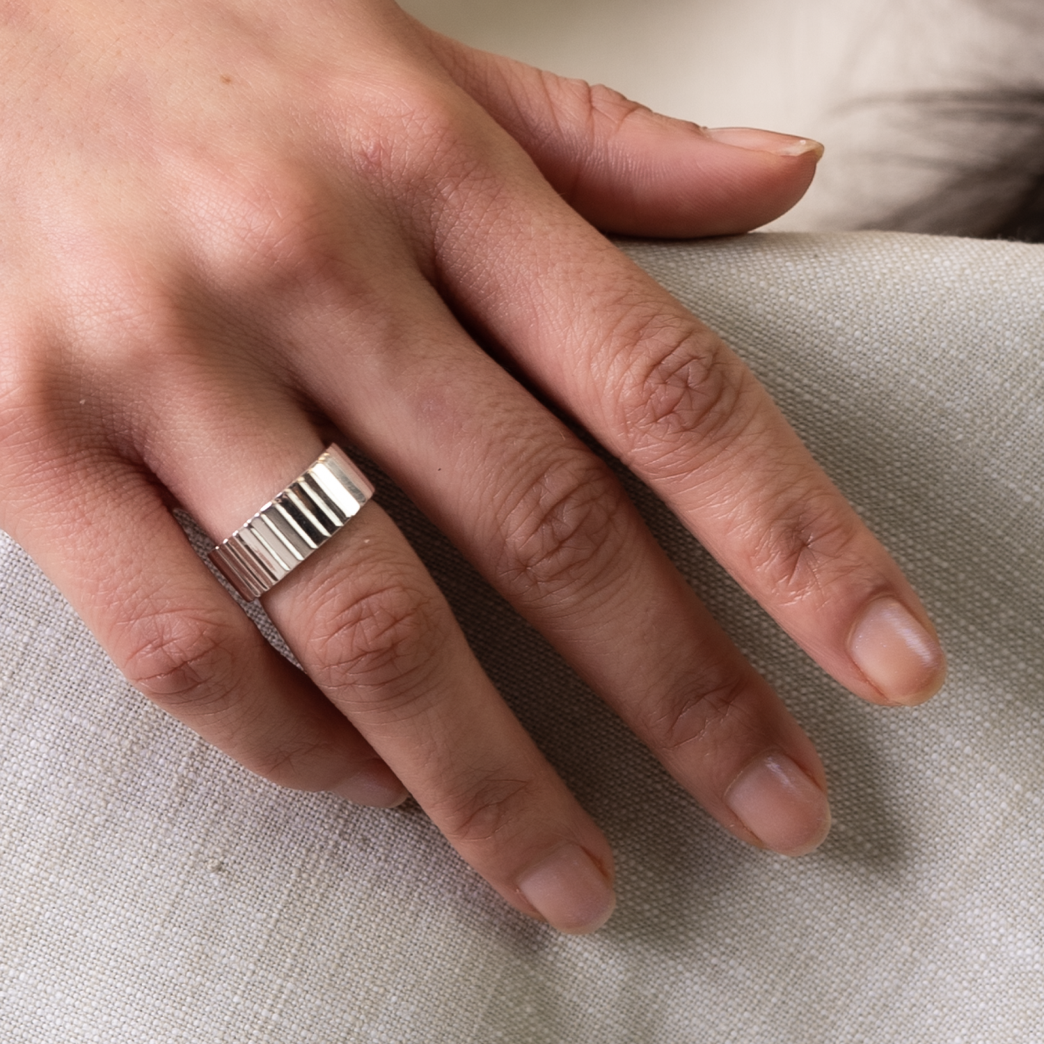 THE SHINY RING hat ein kühnes und glänzendes Unisex-Design aus 925er Sterlingsilber oder 18-karätiger Vergoldung. Der Ring ist vollständig verstellbar und passt daher allen Größen. Ein klassischer Ring, der perfekt ist, um sich selbst oder jemandem, den Sie lieben, ein Geschenk zu machen. Das Schmuckstück wird in einer luxuriösen BYBORN-Box geliefert.