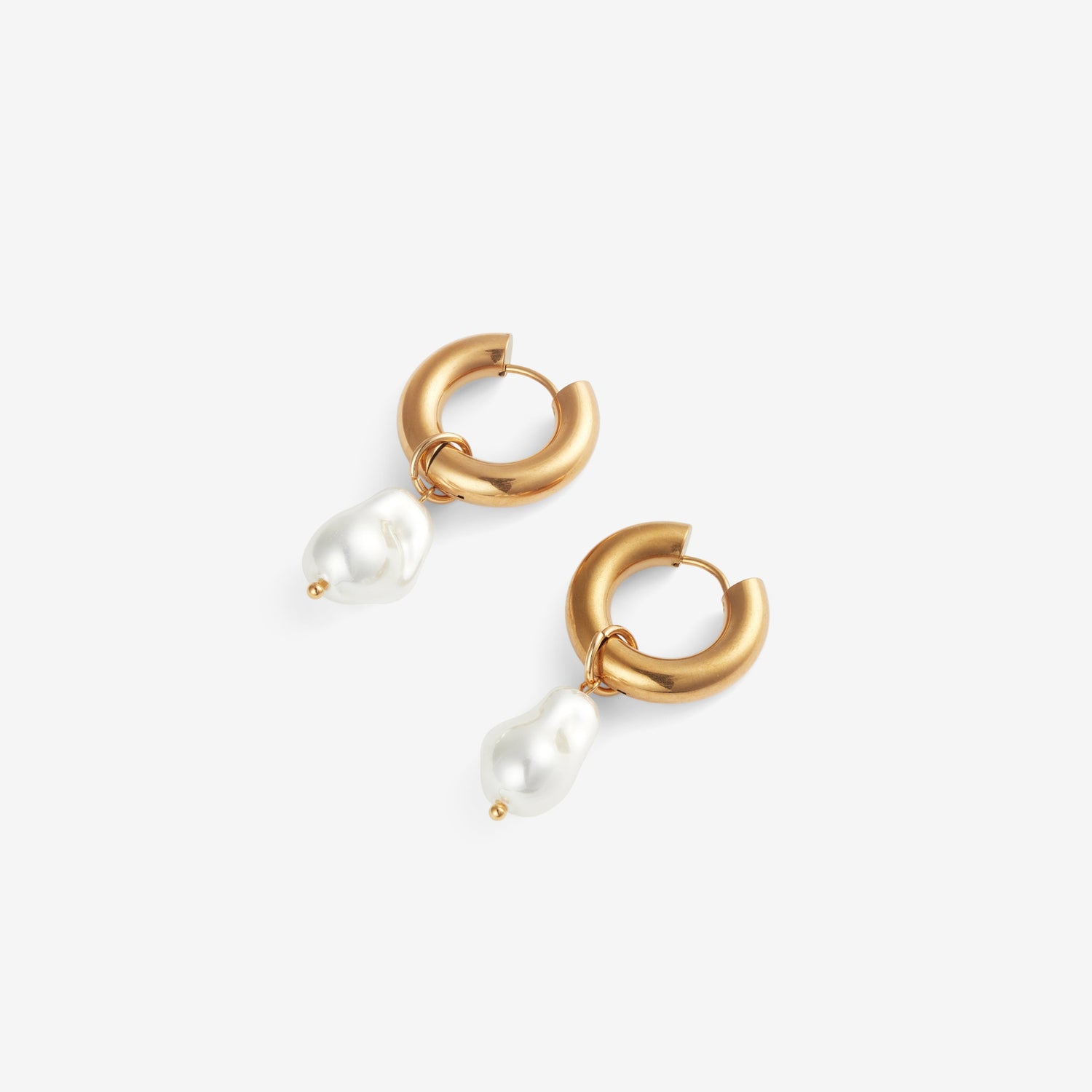 BOLD PEARL HOOPS EARRINGS - Two looks in one! Classic hoops with a detachable pearl. The large, asymmetrical pearl is the perfect complement to both a relaxed beach look and a sophisticated cocktail ensemble. Remove the pearl for a timeless classic that suits any outfit. Delivered in our luxurious BYBORN jewelry box.