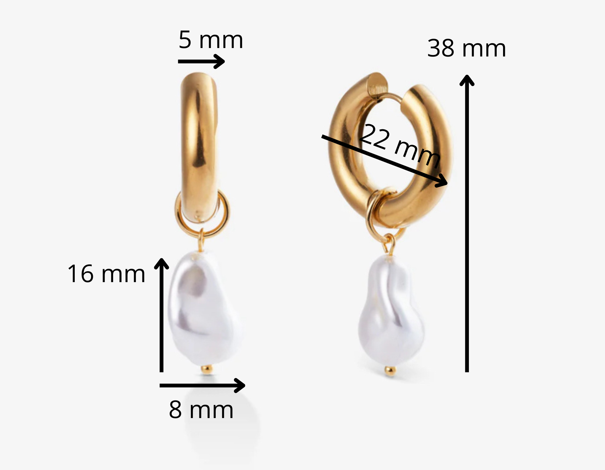Measurements: Total Height: 38 mm, Hoop Diameter: 22 mm, Hoop Thickness: 5 mm, Pearl: 16x8 mm, Weight: 8 g