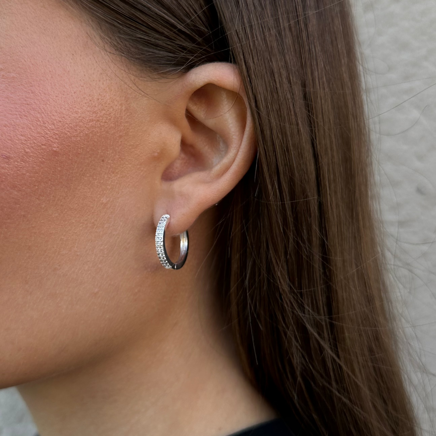THE CLASSIC STONE HOOPS are elegant and versatile earrings, designed with a delicate row of shimmering stones that add a touch of sparkle to their classic hoop shape. These hoops offer a perfect blend of timeless elegance and modern flair. Their subtle size makes them ideal for everyday wear, while the added sparkle makes them suitable for special occasions as well. Combine with our ETERNITY PAVĆ RING for a complete look. Delivered in a luxurious BYBORN box.