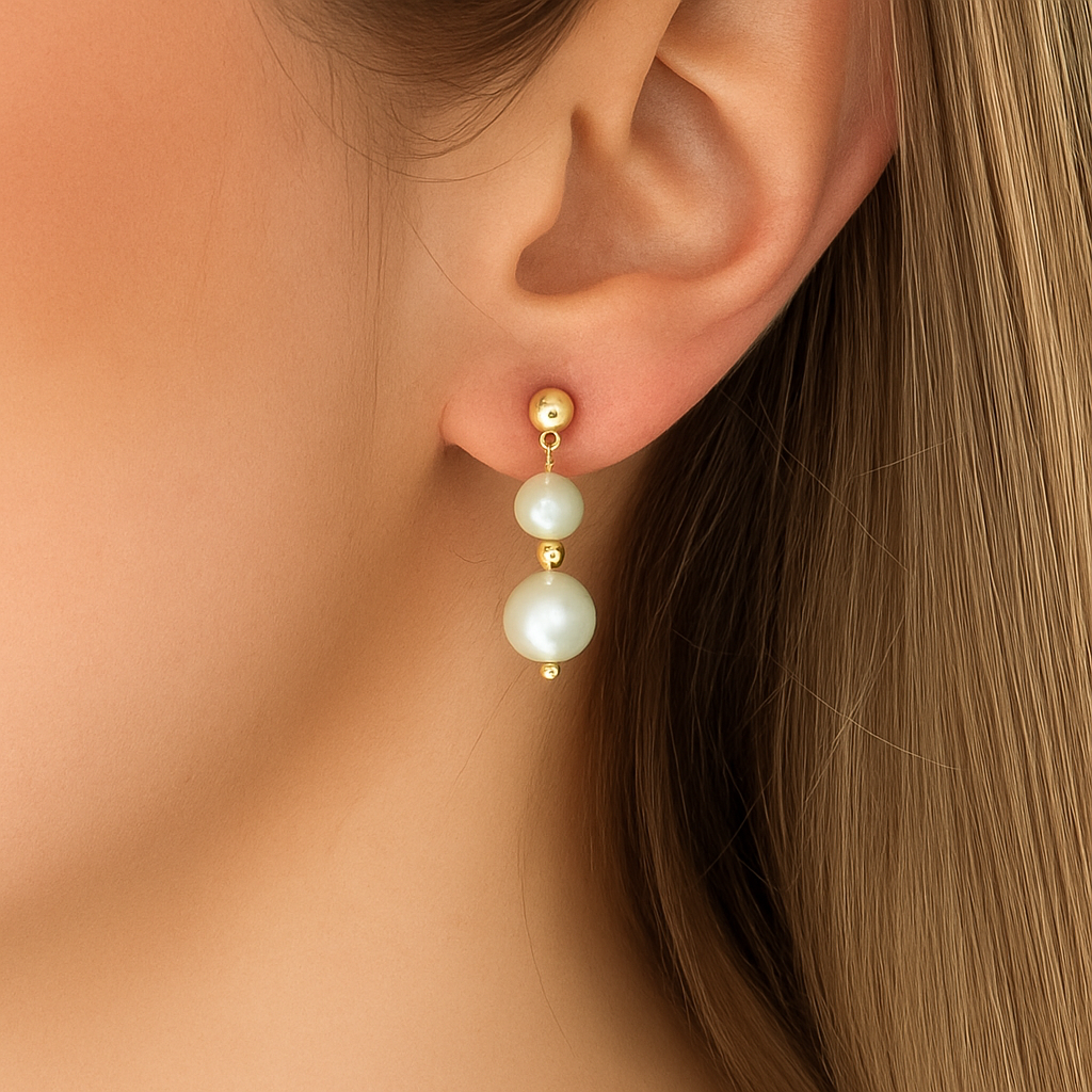 Introducing our DUO PEARL DROP EARRINGS - stunning in their brilliance and elegant in their design. The beautiful pearls serve as the centerpiece of these earrings, and as they say the more the merrier. These earrings are perfect for everyday wear and can be worn alone or paired with other pearl jewellery for an elegant finish. The earrings are made of brass with 18k gold plating & shell pearls and have the length of 23 mm.
