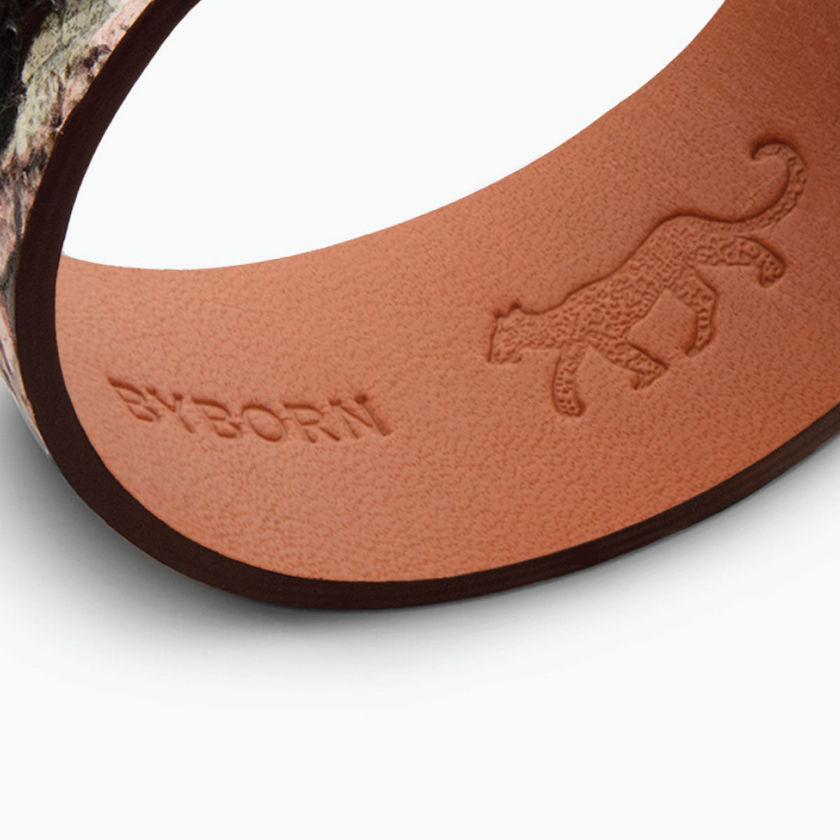 FARRIER is a beautifully handcrafted bracelet in embossed Italian calfskin accentuated with the BYBORN signature B-shape. The delicate clasp adds the finishing touch to the design. The jewelry is delivered in a luxurious BYBORN box.
