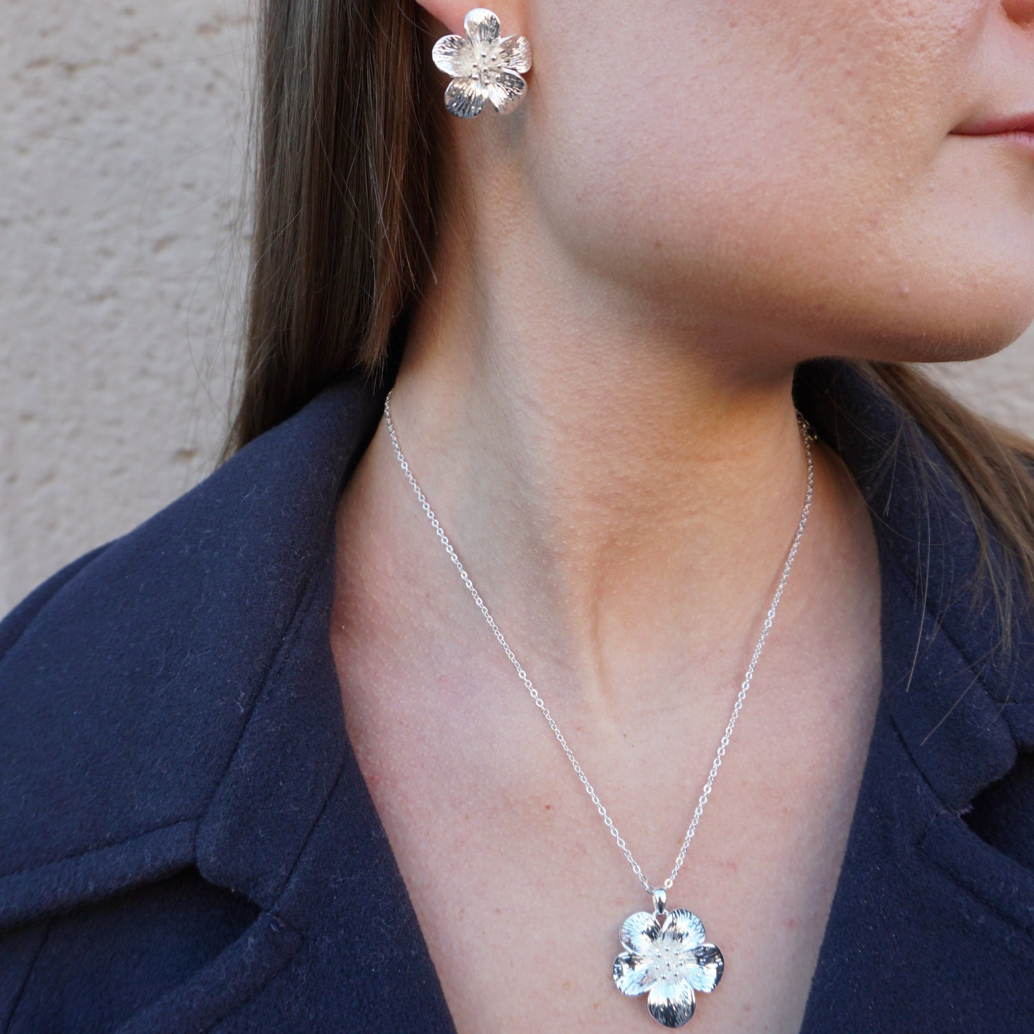 Our bestsellers FLOWER NECKLACE and MIDI FLOWER EARRINGS combined with the same floral design to easily achieve a complete look. Whether you want to elevate your everyday look or add elegance to your evening outfit, this statement sets are a perfect choice. This set comes in our luxurious BYBORN boxes.