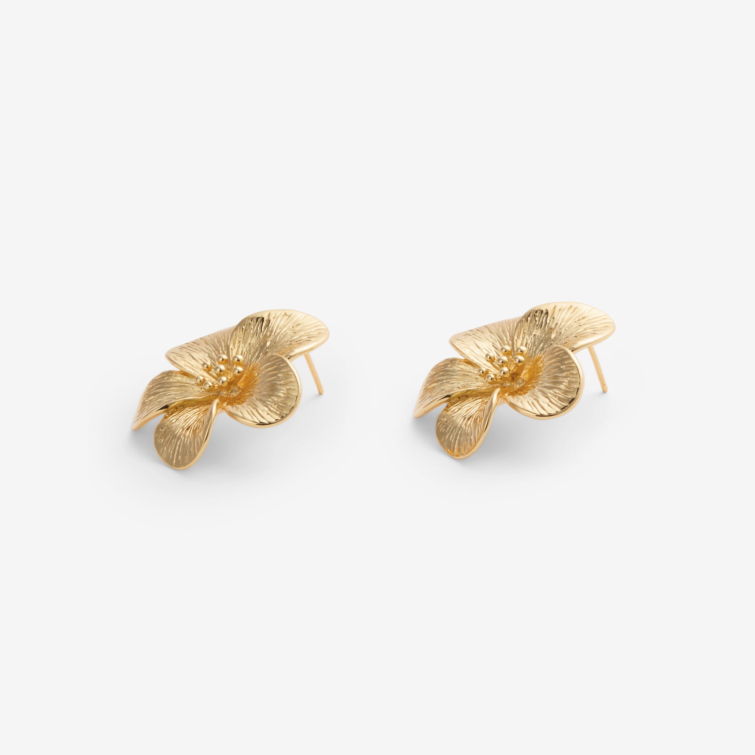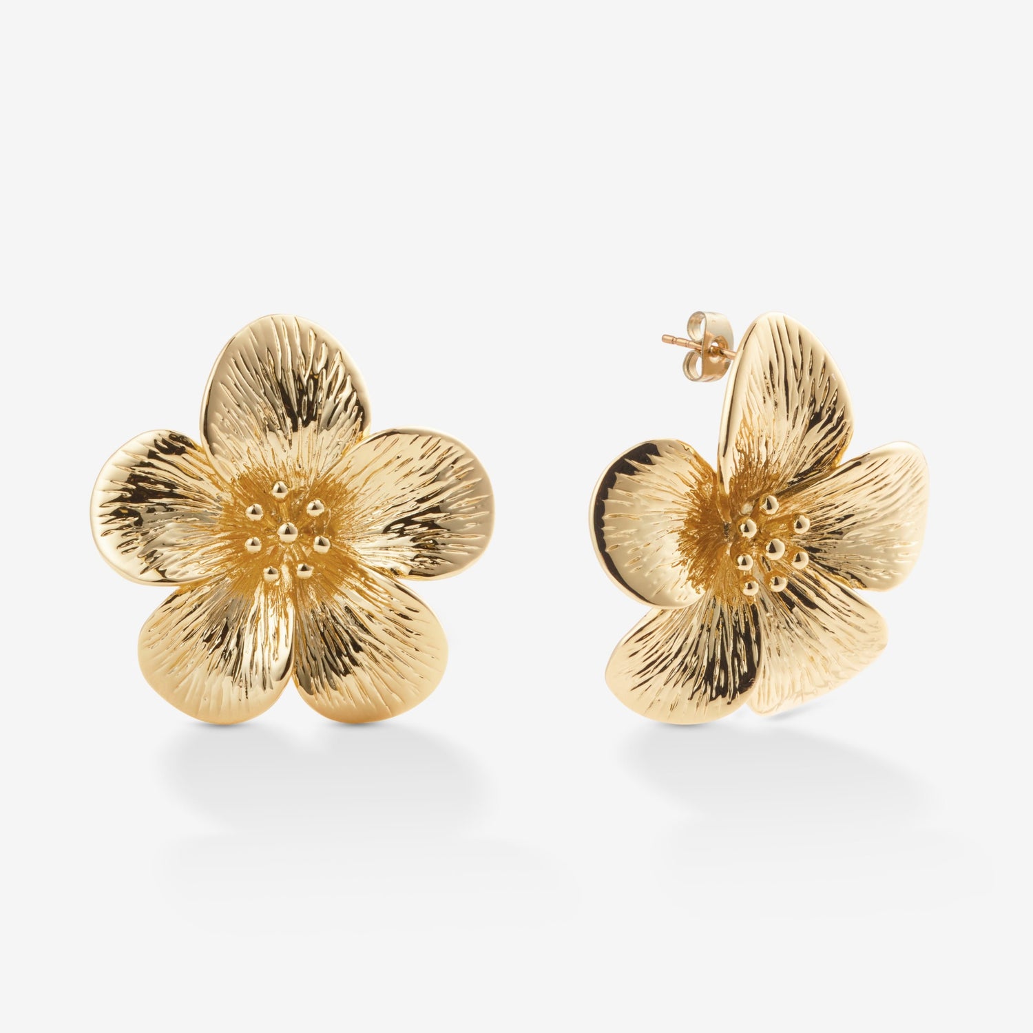 Introducing our LARGE FLOWERS EARRINGS – a tribute to the timeless beauty of nature. These earrings feature a crafted floral design that captures the delicate elegance of blooming flowers. A perfect statement yet feminine jewellery piece for everyday wear or special occasions. Whether you're enhancing your casual outfit or adding elegance to your evening attire, our earrings are the ideal choice. These earrings are made of 18k gold plated brass and they have a size of 30 mm.