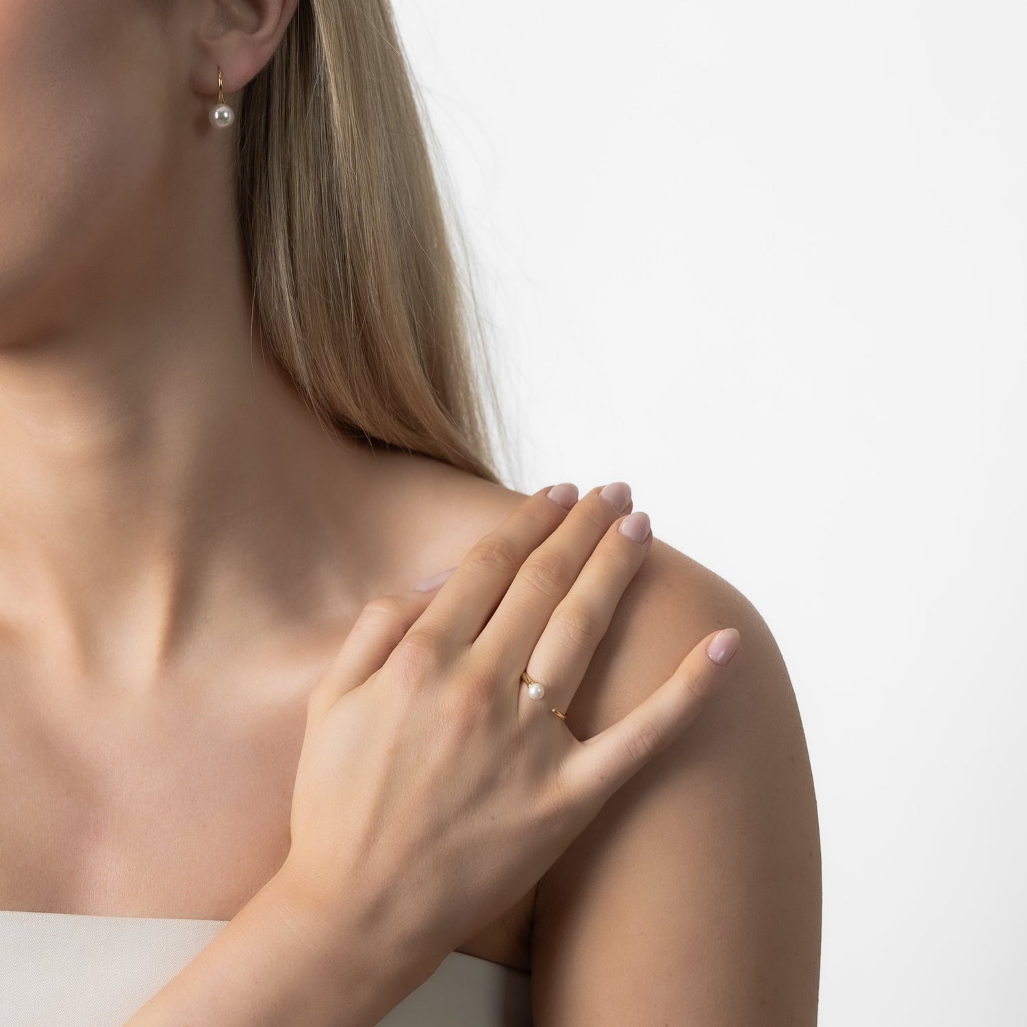 THE OPEN PEARL RING has a modern design, perfect for everyday wear. The ring is adjustable and made in 18k gold plating or 925 sterling silver. Match it with our EAR CUFF WITH PEARL to complete the look. The jewelry is delivered in a luxurious BYBORN box.