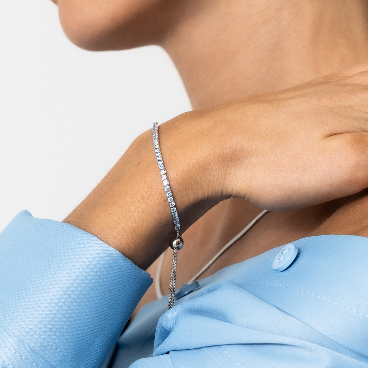 THE TENNIS BRACELET is the perfect addition to your jewellery collection. The chain is simple and elegant, and falls incredibly well around the wrist. Made with genuine 925 sterling silver and blue Zircon stones. Wear it solo or in combination with other colors. The jewellery is delivered in a luxurious BYBORN box.