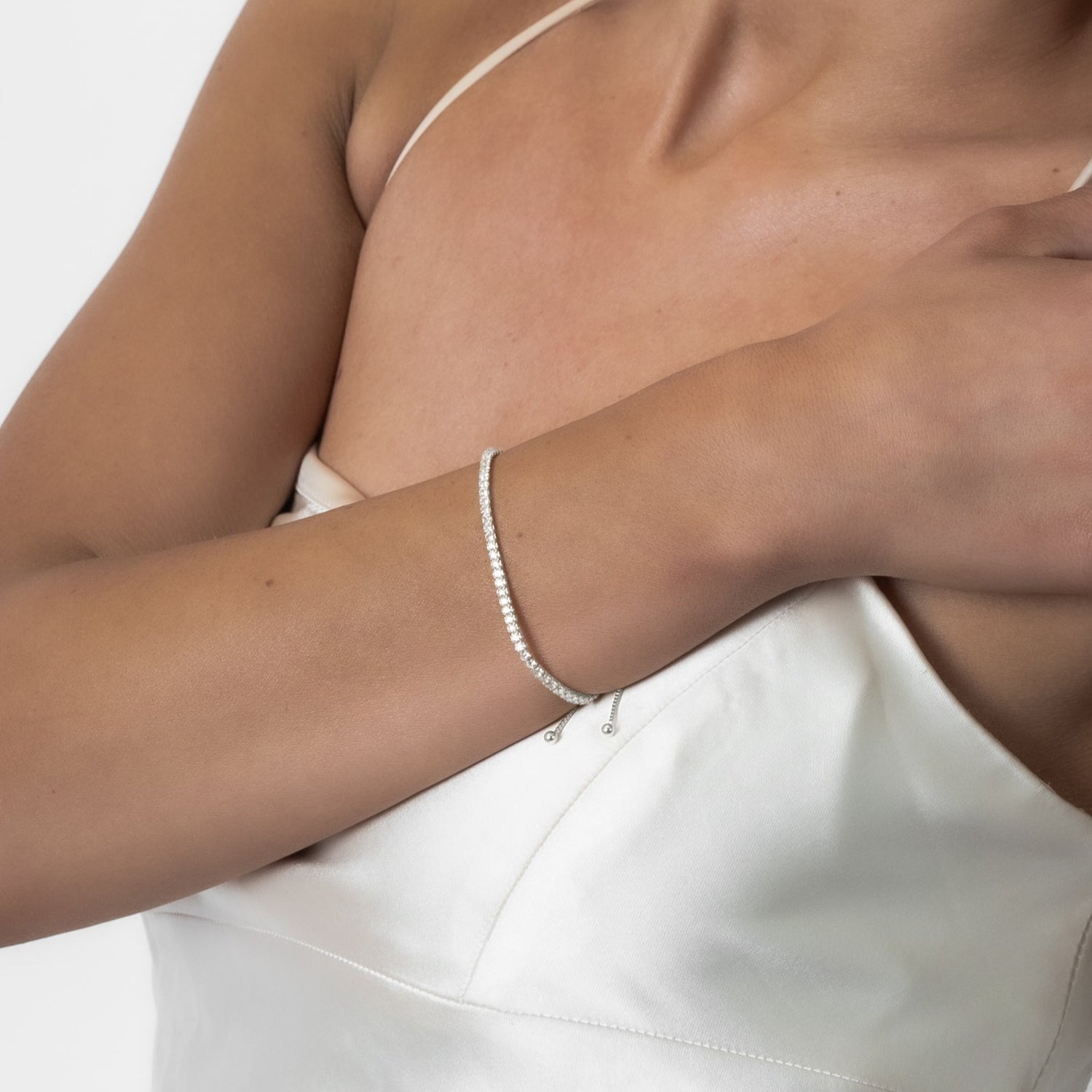 Our TENNIS BRACELET is the perfect addition to your jewellery collection. The chain is simple and elegant, and falls incredibly well around the wrist. Wear it solo or in combination with other stone covered jewellery, such as our TENNIS NECKLACE. Delivered in a luxurious BYBORN box.