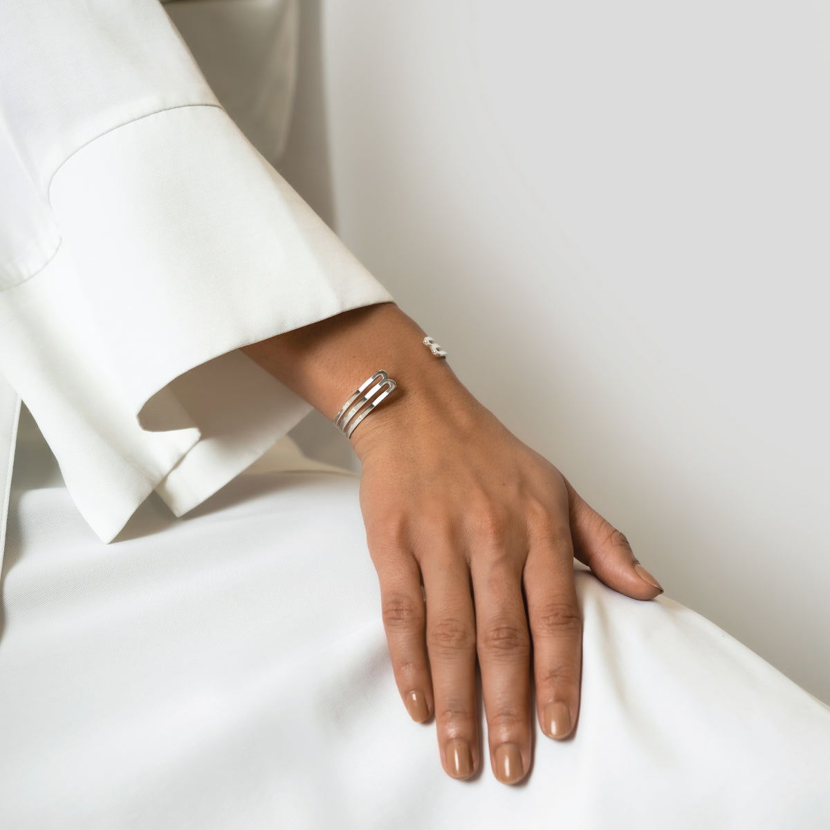 THE ZENITH BRACELET is an elegant and timeless bracelet made with 925 silver plated high grade stainless steel. The perfect bracelet for a complete look. All of our open cuff bracelets can be adjusted slightly with your hands - to tighten or to make wider. The bracelet comes beautifully packed in a BYBORN box.