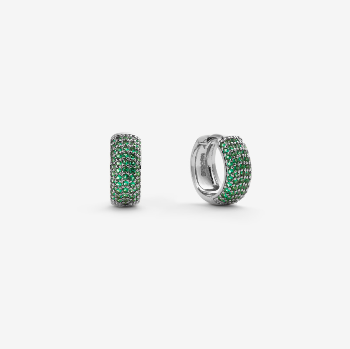 GREEN PAVÉ EARRINGS - Fängslande vackra örhängen med underbar elegans. Den djupa nyansen av grönt tillsammans med den polerade ytan ger ett nästintill majestätiskt intryck. Örhängena är dekorerade av rader med tätt sittande zirkonia stenar vilket ger ett subtilt glitter i alla vinklar.