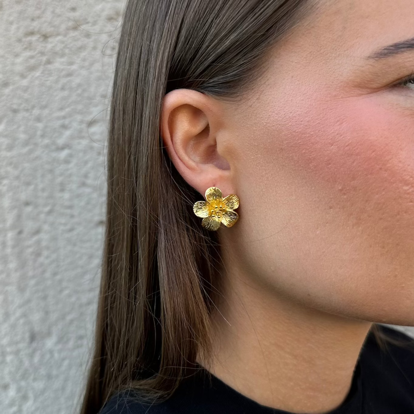 MIDI FLOWER EARRINGS - en hyllning till naturens tidlösa skönhet. Örhängena är medelstora och har en blommig design som fångar det vackra i en utslagen blomma. Oavsett om du vill förhöja din vardagliga look eller ge elegans åt din kvällsoutfit är dessa statementörhängen ett perfekt val.