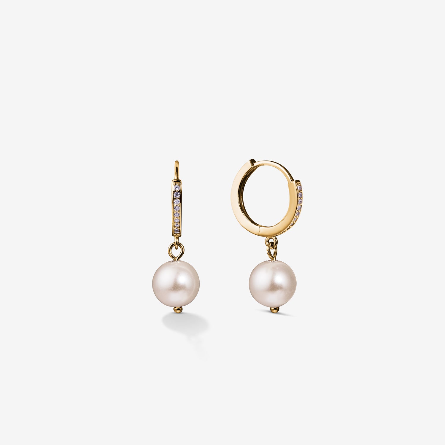 PEARL DROP HOOPS EARRINGS är vackra i sin briljans och eleganta i sin form. Pärlan är mittpunkten av örhängena men med en hoops som är vackert dekorerad med zirkonastenar. Örhängena är perfekta till vardags och för att bära själv eller kombineras med andra örhängen. Tillgängliga i 925 sterling silver eller med 18k guldplätering och har en storlek på 25 x 13 mm. Smycket levereras i en lyxig BYBORN-ask.